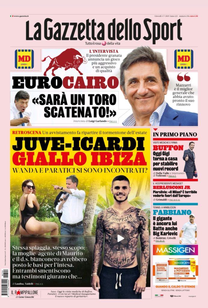 Queste le prime pagine dei principali quotidiani sportivi in edicola oggi, GiovedƬ 4 Luglio