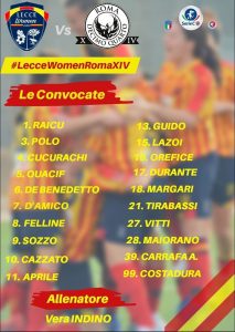 Archiviata la sconfitta con il Pomigliano capolista, è tempo di riscatto all’apertura del nuovo anno per il Lecce Women. La formazione allenata da Vera Indino, ora ottave a 16 punti e distanti 13 lunghezze proprio dal Pomigliano battistrada, cercheranno di aumentare le proprie certezze per risalire la china verso i quartieri alti del Girone D della Serie C