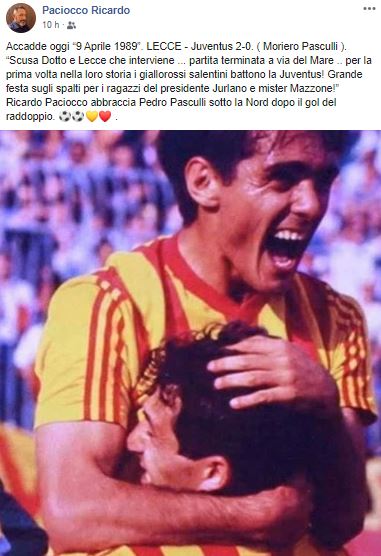 L’ex calciatore giallorosso porta alla memoria la gara del 9 aprile 1989, quando i salentini di Mazzone scrissero la storia grazie ai centri di Moriero e Pasculli.