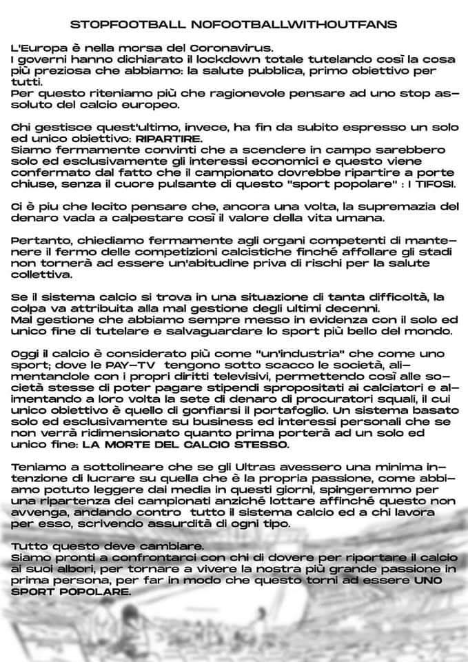 Sul web ĆØ apparso un comunicato congiunto di numerose tifoserie organizzate italiane ed europee. L’orientamento comune ĆØ quello di opporsi...