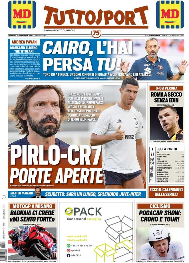 Il nostro consueto buongiorno con la rassegna stampa delle principali prime pagine dei quotidiani sportivi di domenica 20 settembre.