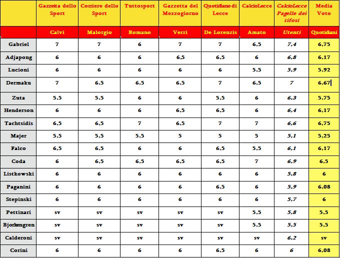 Ecco la comparazione tra le pagelle del Lecce scritte dalla nostra redazione e i quotidiani sportivi/locali. Gabriel-Tachtsidis i migliori, subito dopo l’esordiente Dermaku. Giù Majer e Zuta.