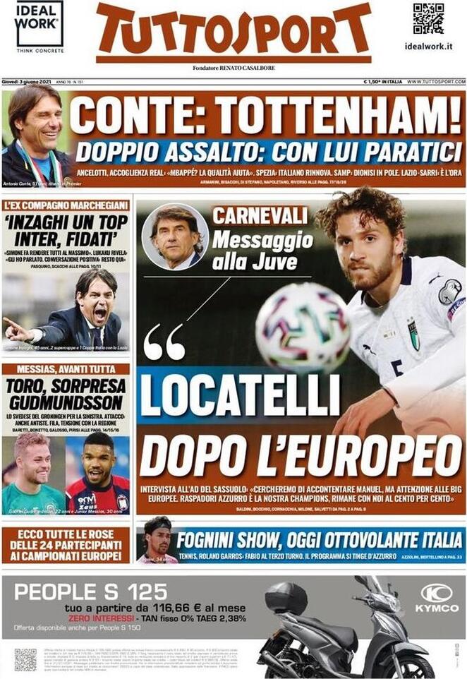 Il nostro consueto buongiorno con la rassegna stampa delle principali prime pagine dei quotidiani sportivi di giovedì 3 giugno