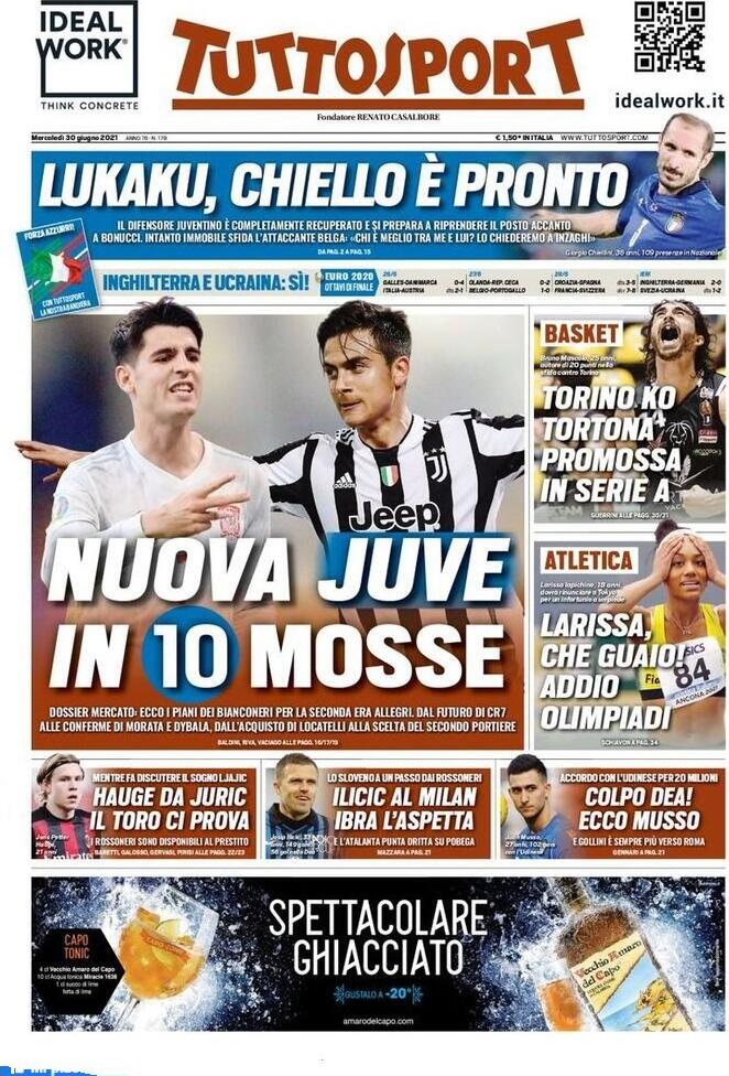 Le prime pagine dei quotidiani sportivi in edicola oggi mercoledì 30 giugno 2021