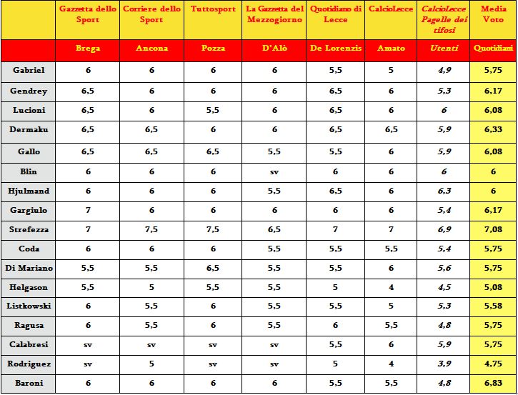 Ecco la comparazione tra le pagelle del Lecce scritte dalla nostra redazione e i quotidiani sportivi/locali. Brilla solo Strefezza, bene Dermaku, Gendrey e Gargiulo. Deludono i subentri.