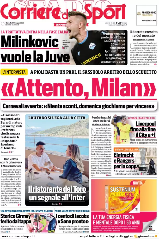 Buongiorno dalla nostra redazione con le prime pagine dei quotidiani sportivi in edicola oggi
