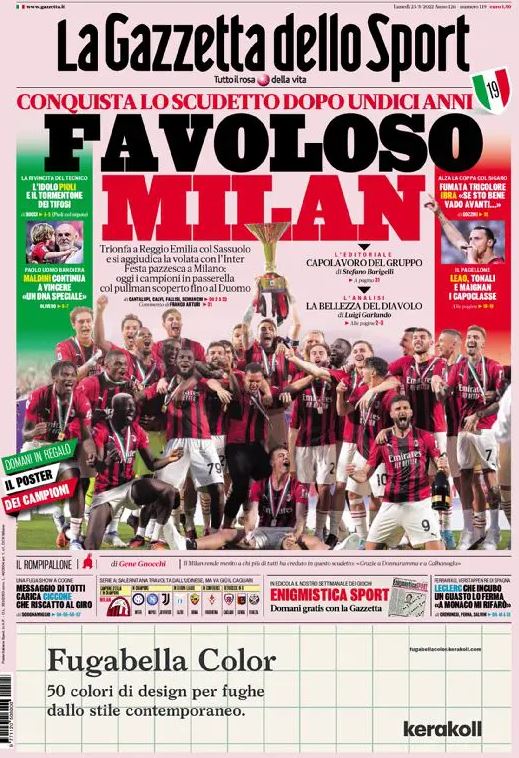 Queste le prime pagine dei quotidiani sportivi di oggi, lunedƬ 23 maggio 2022.