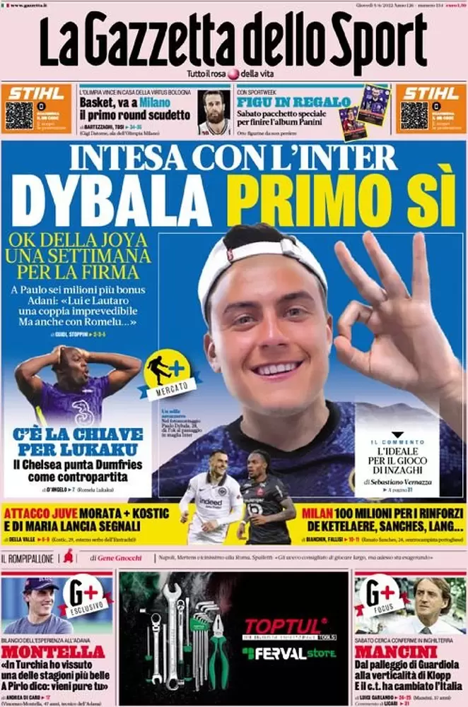 Il nostro consueto buongiorno con la rassegna stampa delle principali prime pagine dei quotidiani sportivi di giovedƬ 9 giugno.