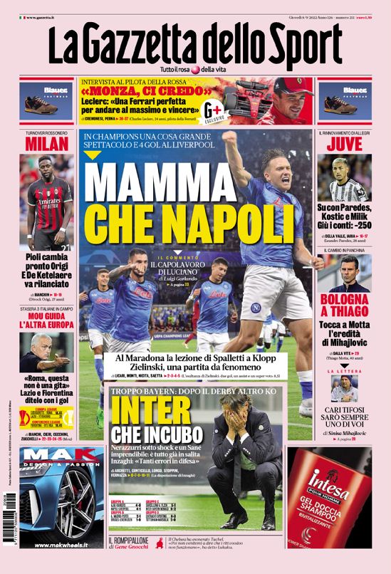 La redazione di calciolecce propone ai lettori le prime pagine dei tre quotidiani sportivi in edicola oggi, giovedƬ 8 settembre...