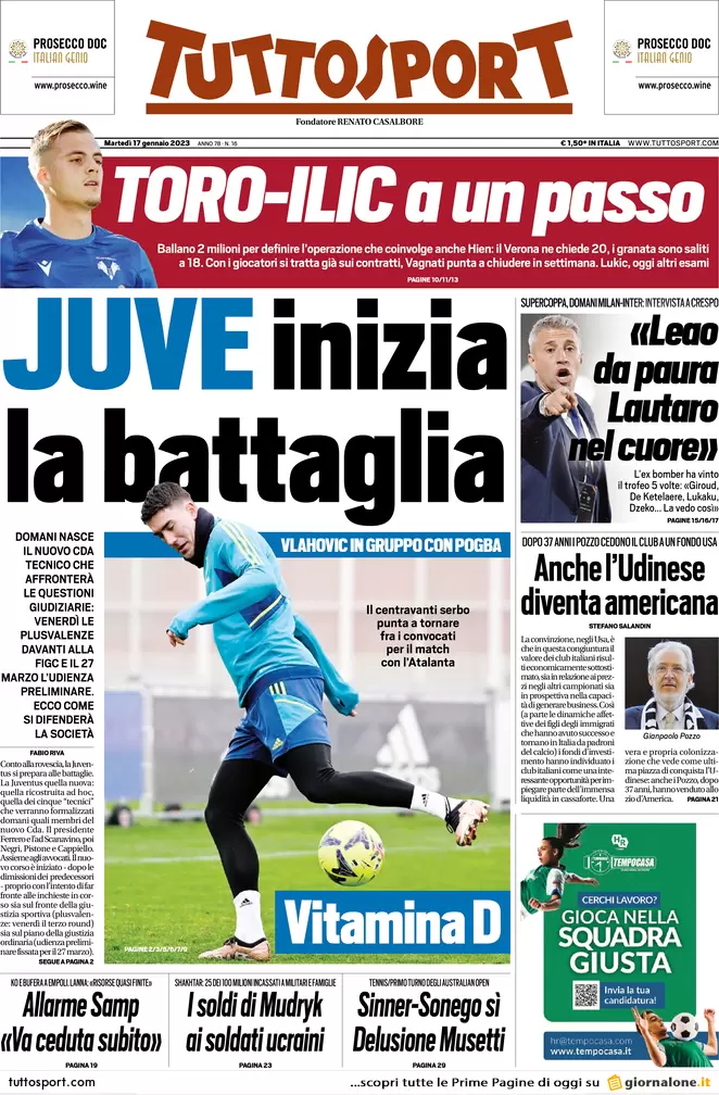 Buongiorno dalla nostra redazione con le prime pagine dei quotidiani sportivi in edicola oggi