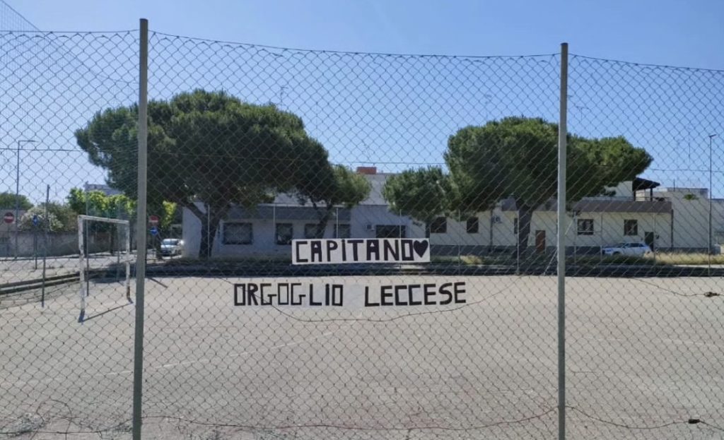L’immagine immortala lo striscione apparso nel quartiere dove il salentino protagonista del ritorno in B del Lecce ĆØ cresciuto Prima...