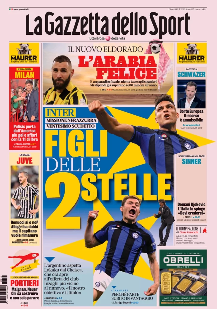 Buongiorno dalla nostra redazione con le prime pagine dei quotidiani sportivi in edicola oggi