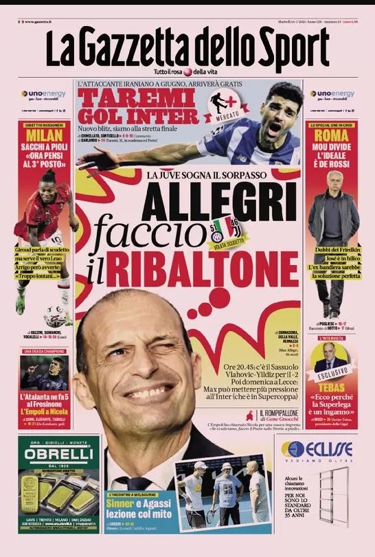 Queste le prime pagine dei giornali sportivi di oggi, martedƬ, 16 gennaio 2024...