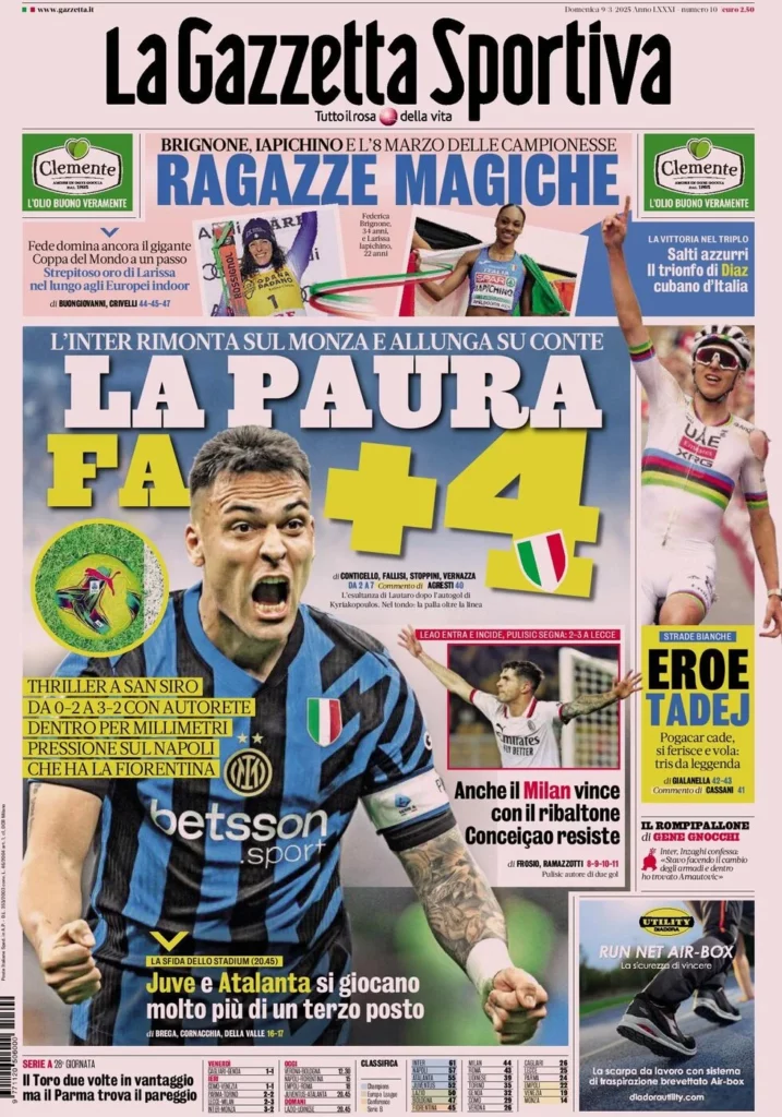 Il nostro consueto buongiorno con la rassegna stampa delle principali prime pagine dei quotidiani sportivi di domenica 9 marzo...