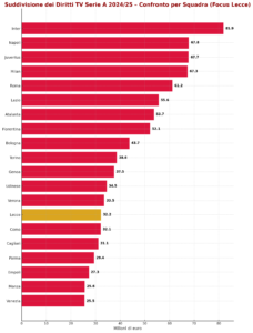 In questa particolare classifica condotta dall’Inter, il Lecce si attesta al 14° posto con 32,2 milioni di euro, alle spalle del Verona e appena sopra il Como.