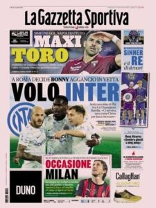 Le prime pagine dei quotidiani sportivi in edicola oggi