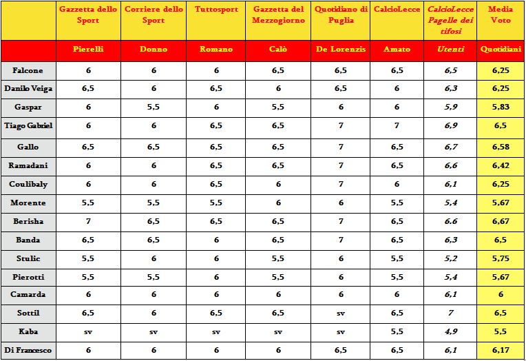 Ecco la comparazione tra le pagelle del Lecce scritte dalla nostra redazione e i quotidiani sportivi/locali. Berisha ancora top, poi Gallo e Sottil. Giù Kaba.