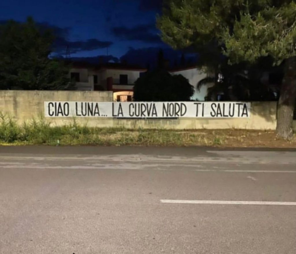 Sul viale dello stadio ĆØ apparso uno striscione per Luna Benedetto, la 15enne leccese morta domenica sera a seguito di...